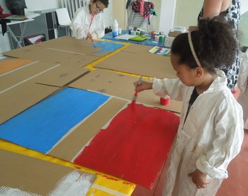 Mardi matin, Laurence a lu le livre Tutto va bene aux Ed. Thierry Magnier, racontant l’histoire d’un petit garçon oublié dans une gare par ses parents, mais bien sûr ils le retrouvent. Par la suite, les enfants ont commencé à peindre en 3D la maison qu’ils avaient dessinée la veille. L’après-midi, ils ont visité l’exposition « Caméléon vermillon » à la MEMO, portant sur le rouge et ses nuances.